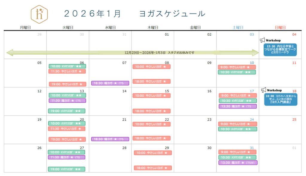 1月のヨガスケジュール更新いたしました。