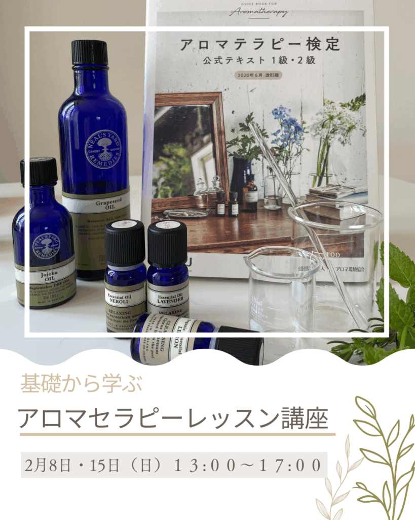【募集】2月基礎から学ぶアロマセラピーレッスン