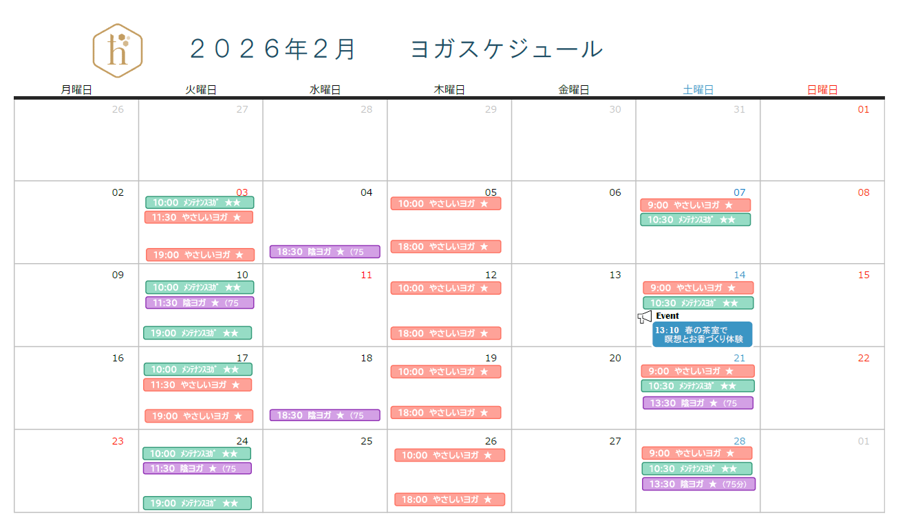 各クラスの詳細はオンラインヨガのお知らせページでご確認いただけます。